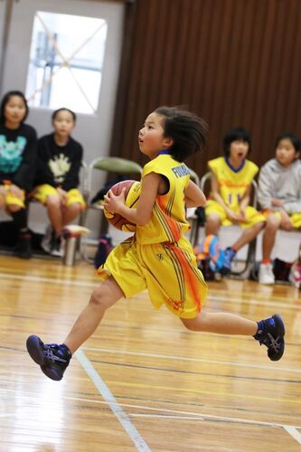 ミニバスケットボール写真 -Basketball Photo- 2018 練習試合 ゴール前、大きく踏み込んで
