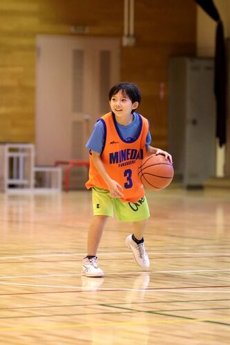 ミニバスケットボール写真 -Basketball Photo- 2018 練習試合 試合中だけど、なんか楽しそうやね^^ (写真はピンボケですが)
