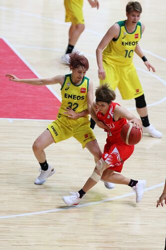 バスケットボール写真 -Basketball Photo- 2020.9.18 富士通レッドウェーブvsENEOSサンフラワーズ ENEOSサンフラワーズ 宮崎早織選手 ガード陣が二人抜けた穴を埋める強い思いがプレーに出ていました 宮崎選手の高速レイアップはとにかく速い