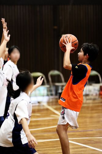 ミニバスケットボール写真 -Basketball Photo- 2020 練習試合 ジャンプショット コロナで全くバスケができない状態が長く続いたせいなのか、その間に身長が少し伸びたせいなのかは分かりませんが、練習再開以降シュートが入らず本人悩み中(苦笑)